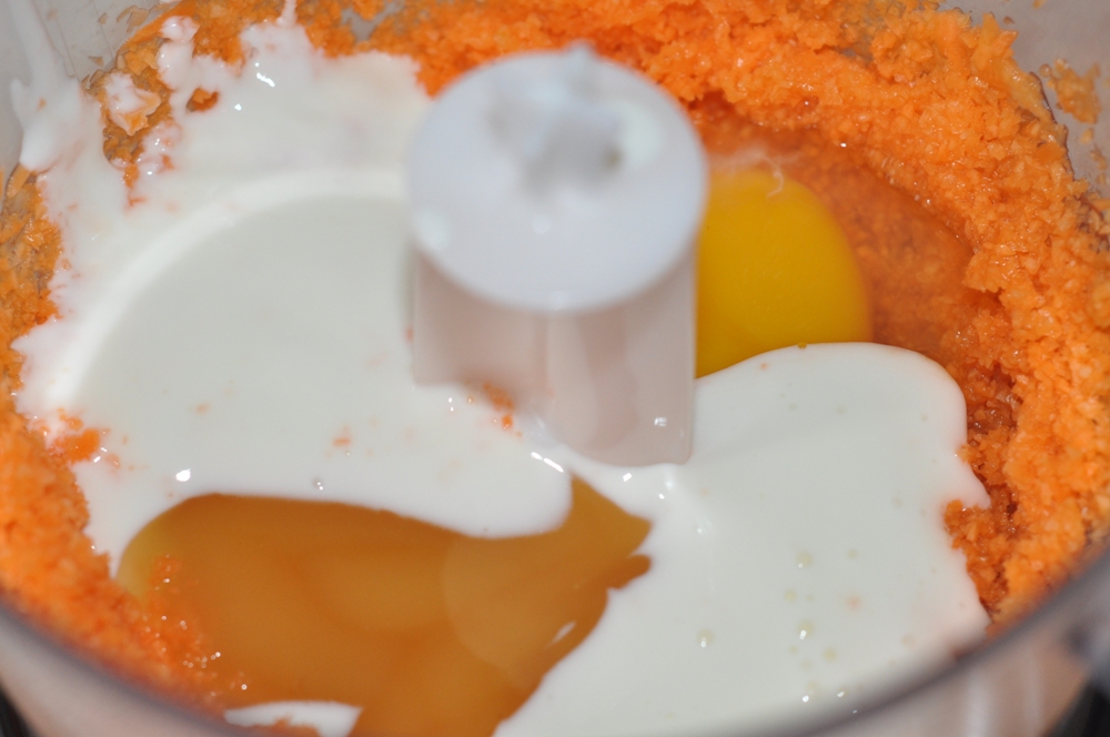 sau toaca-l in robot. Pune peste el toate ingredientele si amesteca bine in