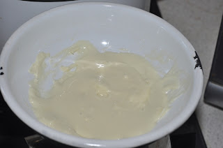 Amesteca intr-un castron faina cu praful de copt si zaharul. Pune in robot si amesteca bine cu untul, adauga apoi treptat laptele, esenta de vanilie si ouale. Amesteca bine.