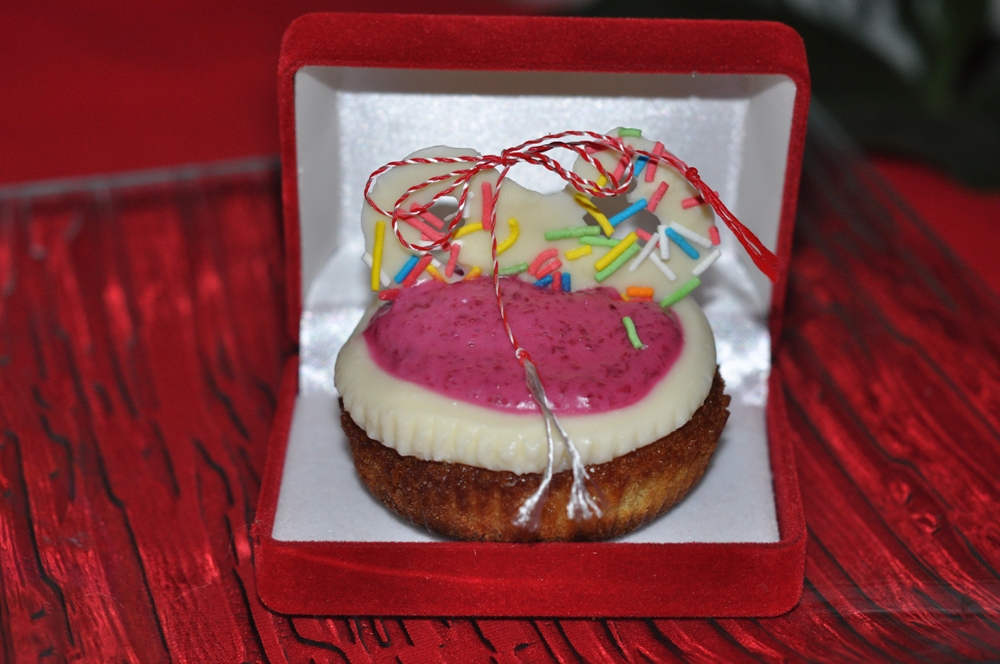 Pentru ca o am pe mama mea in vizita si este primul Martisor al fetitei mele, am decis sa sarbatorim cu mare fast acest 1 Martie. Asa ca am modelat martisoare dulci: briose pufoase, umplute cu budinca de caspuni si cu o glazura delicioasa din crema de branza. rezultatul a fost tare colorat si primavaratic. Prin urmare, va daruiesc tuturor un strop de primavara dulce: