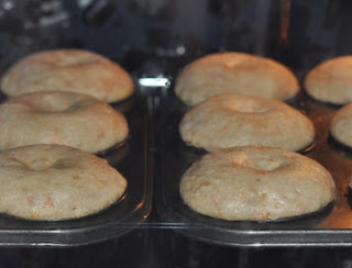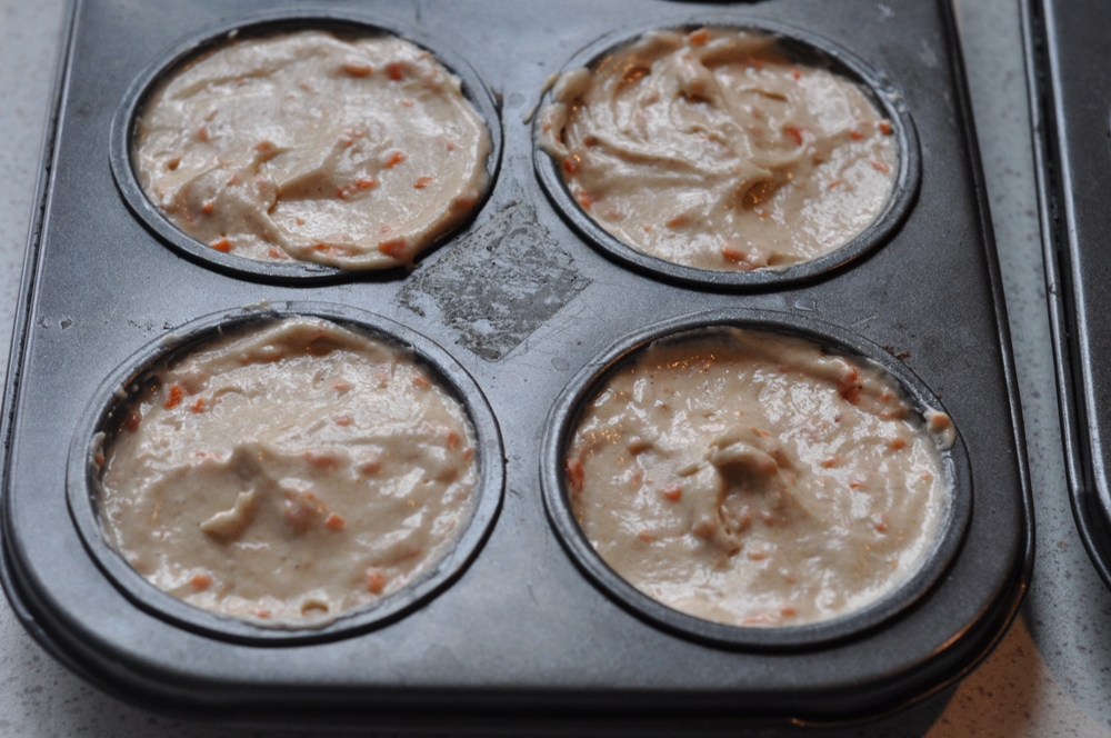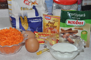 12 briose mari): 1 1/2 cana de faina, 1 cana de zahar, 1 morcov dat pe