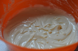 glazura. Pune crema de branza intr-un castron, amesteca in ea cu un tel sau cu