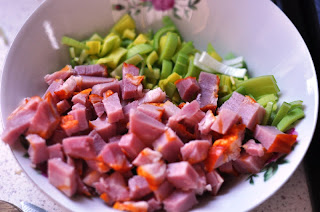 - Carne de pui, Salate, La foc, Branza, Carne, Branza de vaci, Lactate, Oua, Oua de gaina, Pranz, Cina, Gustari, Salate de pui, Salate cu carne, Salate reci, Salate usoare, Salate rapide, Gustoase, Simple