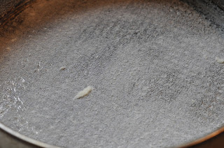 Unge o tava rotunda cu margini detasabile cu unt si presara gris.