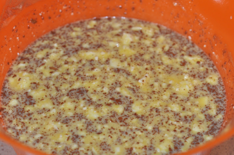 Paseaza branza dulce. Pune ouale si zaharul in robot, amesteca bine. Adauga laptele, branza dulce si scortisoara.
